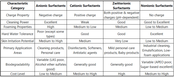 Picking the appropriate surfactant calls for consideration of numerous factors, including application demands, cost, ecological problems, and regulatory needs. The adhering to table sums up the key characteristics of the four major surfactant categories: